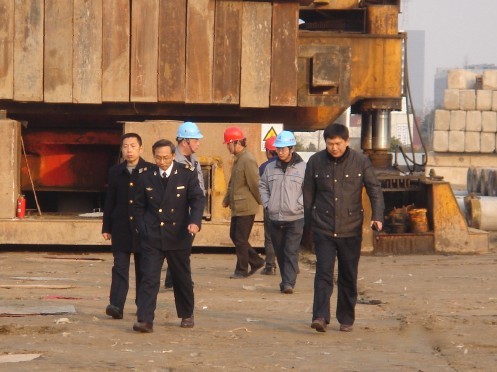 | 2011年1月21日,南通市领导及代建中心和海事局一行领导深入我公司桩基工地检查指导工作,并给我公司员工带来了美好的新春祝福。 南通市领导在我公司项目部同志的陪同下到达施工现场,亲切地慰问了工地的员工,送上了慰问品,详细询问了施工进度。几位领导对我公司员工的防寒保暖工作和工地的施工进度以及各项安全生产工作给予了充分的肯定。