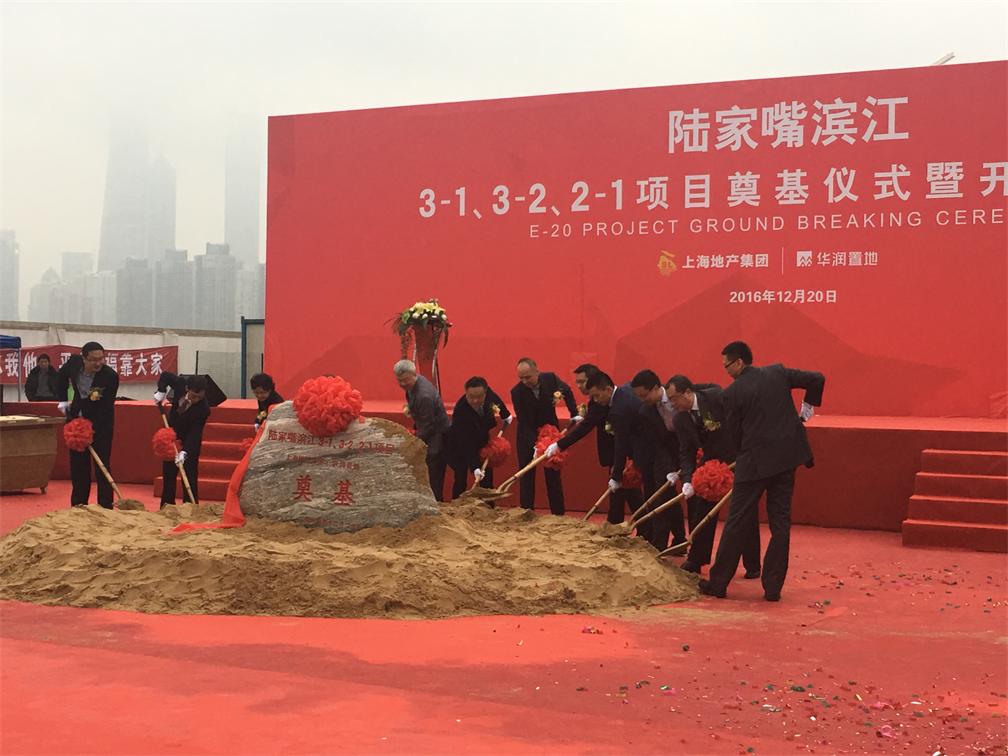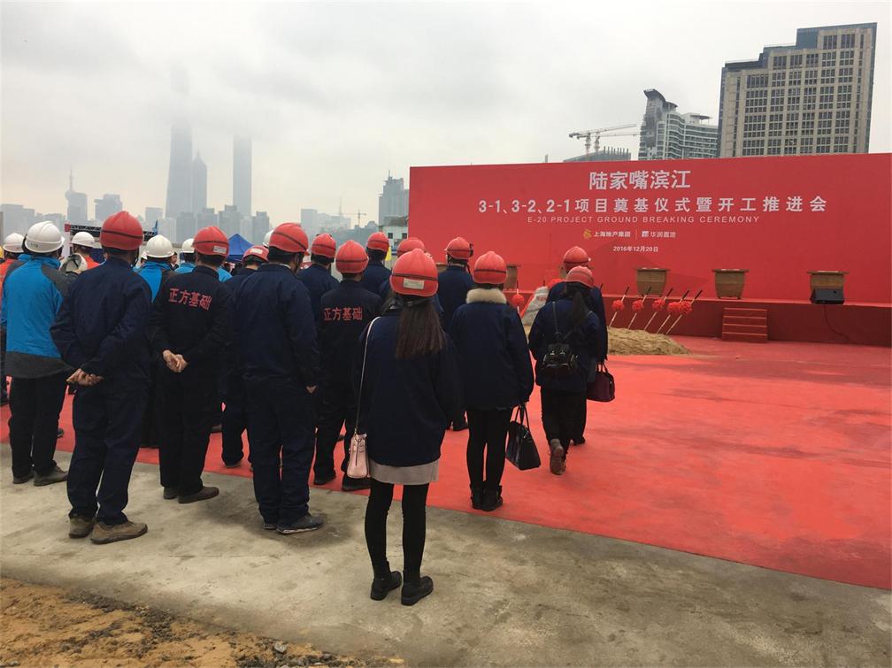 |         2016年12月20日下午15时30分,在上海市浦东新区塘桥街道举行了上海陆家嘴滨江3-1、3-2、2-1项目奠基仪式暨开工推进会。该项目由上海地产集团与华润置地合作开发。     我司作为地基与基础工程的专业承包方,承包了该项目E20单元E-3-2地块桩基工程部分同时也参加了开工奠基仪式。仪式上该项目的开发单位、设计单位、建设单位、监理单位和施工单位的主要负责人都作了重要发言。     北京时间2016年12月20日下午16点08分,主持人宣布项目正式开工,现场鞭炮齐鸣、礼花齐放,我司的静压桩机成功打入第一根桩,圆满结束了此次的开工奠基仪式!